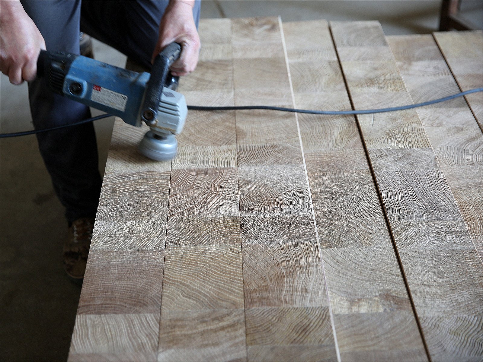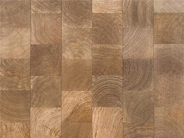 Natural oak blocks, cut across the grain for maximum durability and bold pattern depth.