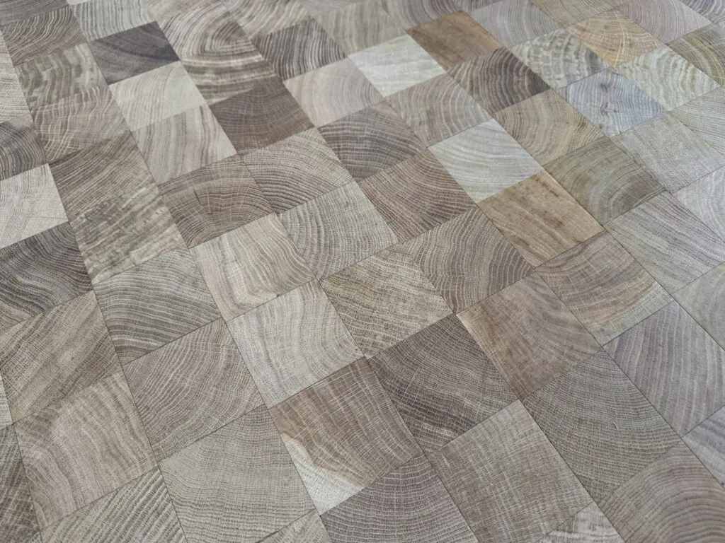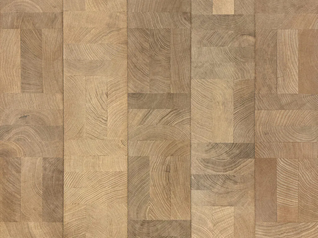 “End grain” refers to flooring where the wood’s growth rings and fibers are exposed vertically on the surface, rather than cut along the length. This special cut changes both the appearance and the physical properties of the flooring.
